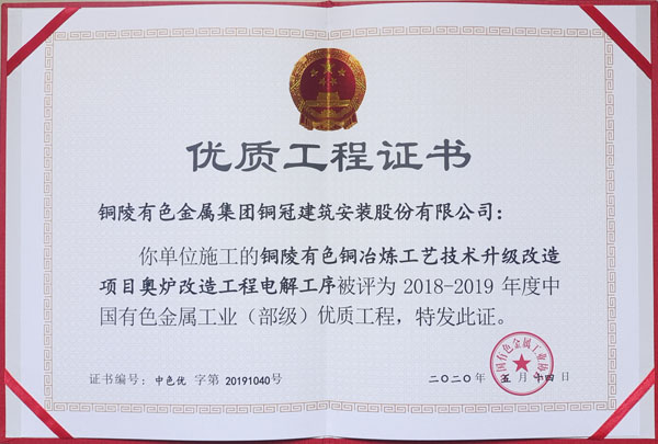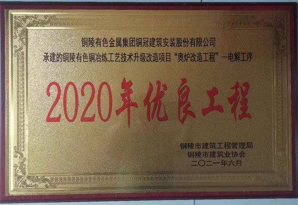 铜陵市2020年优良工程(铜陵有色铜冶炼...