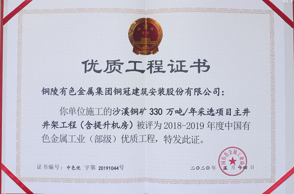 沙溪铜矿采选项目主井井架工程(部优)